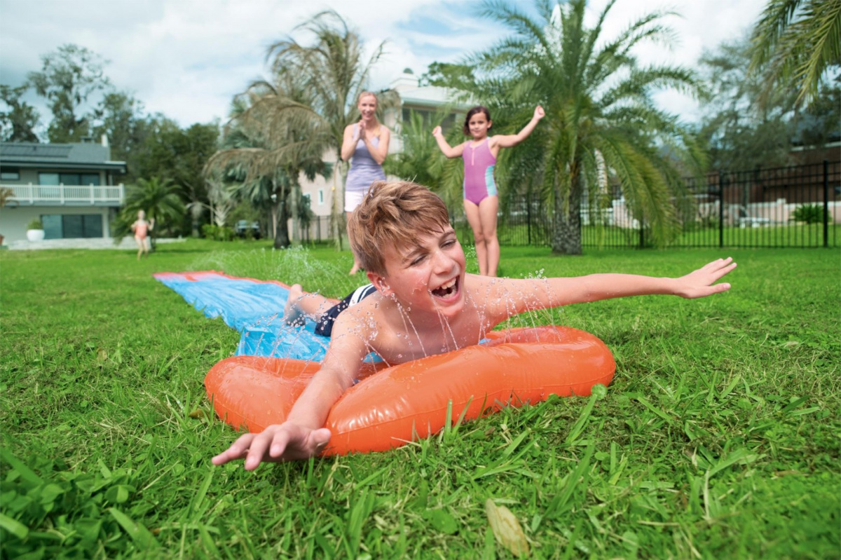 Vodeni tobogan za djecu od 3 godine i više. Duljina tobogana 488 cm, marke BESTWAY, uključuje i zakrpu za popravak.