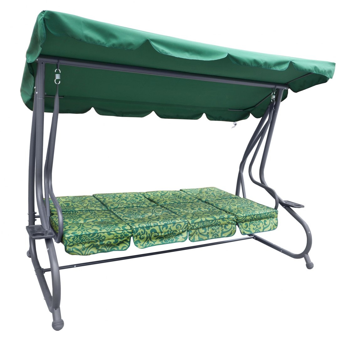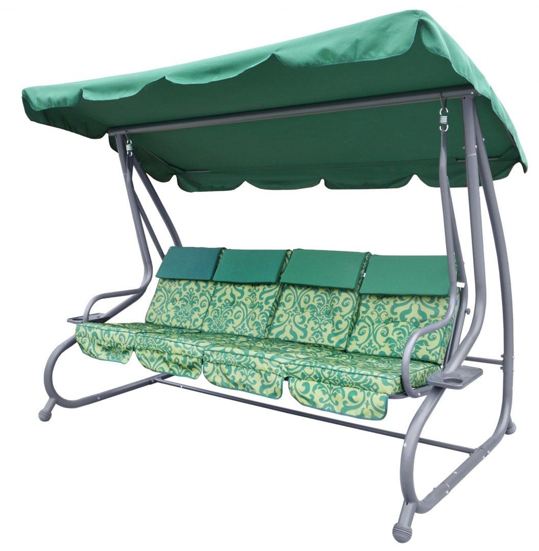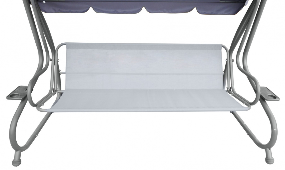 | Sjedalo je izrađeno od Textiline materijala s tkanjem 2×1, Materijal od kojeg je mreža izrađena je od poliesterske pređe presvučene vinilom. Textiline je namijenjen za vanjsku upotrebu zbog svoje visoke otpornosti na teške vremenske uvjete. Mreža je izuzetno fleksibilna i otporna na istezanje, što dodatno utječe na udobnost korištenja, a sam materijal se ne deformira. višestupanjsko glatko podešavanje vizira, pokrov vizira izrađen od poliestera s visokom težinom od 180g. preklopno udobno sjedalo, koje se može koristiti i za sjedenje i za ležanje, 4 odvojena sjedala ispunjena tapecirung spužvom, širine cca 6 cm, 2 držača za piće, učvršćivanje ljuljačke na opruge, konstrukcija je izrađena od čelika presvučenog prahom, visokokvalitetni zavareni spojevi, visoka otpornost na vremenske uvjete, na vrhovima nogu masivna protuklizna guma, jednostavno održavanje čistoće, presvlake sjedala izrađene od poliestera težine 160g., maksimalno opterećenje 300kg. | |